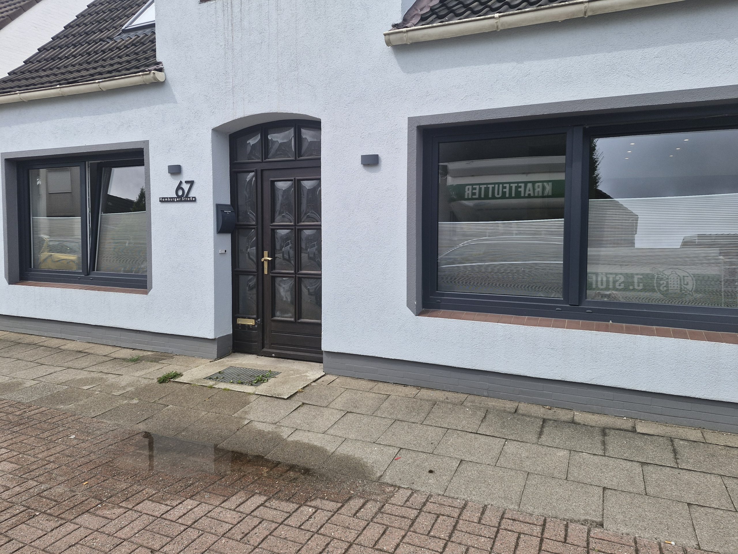 Geräumiges alleinstehendes Objekt mitten an der Hauptstraße in der Stadt von Heide. Trotzdem ruhig und komfortabel. Riesiger Stellplatz für LKW, Baumaschinen und Arbeitsmaterial.
