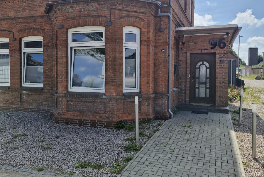 Geräumiges alleinstehendes Objekt mitten an der Hauptstraße in der Stadt von Heide. Trotzdem ruhig und komfortabel. Riesiger Stellplatz für LKW, Baumaschinen und Arbeitsmaterial.